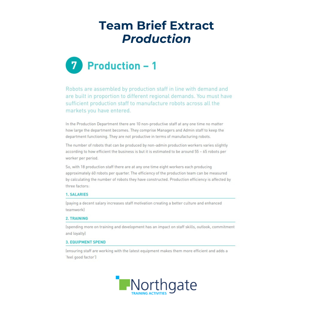 - Give a brief introduction, in terms of how the simulation works: a number of rounds in which teams make business decisions that are analysed by the program. Explain what determines the winning team.