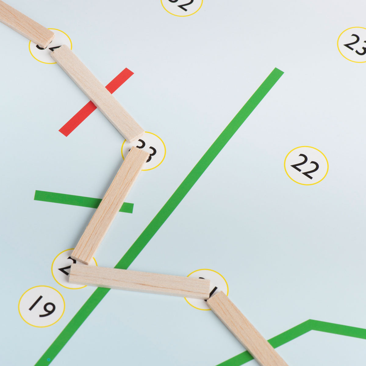 - Issue materials (floor plan, 'planks', Team Briefs, set of 48 data cards) and allow groups 20-30 minutes to plan their strategy.
