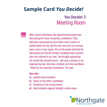 Paul Rice, Group Trainer, Sytner Group We are using the 'Diversity & Inclusion' training activity with lots of groups and the game has been received well and is achieving what we hoped in terms of raising awareness and generating responsibility. Our audience likes the way the game works with the board game format and the questions and case studies are effective at creating discussion. This Northgate training resource has supported our training superbly!