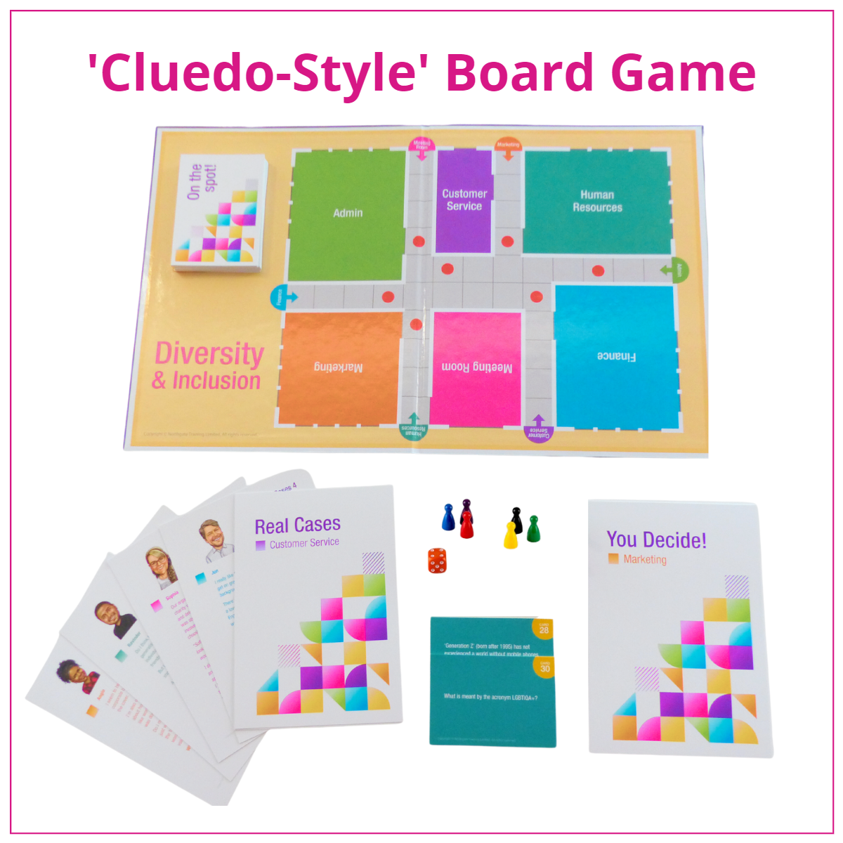 When a player enters their department they 'meet' a member of staff who will raise a key issue. This is supplied on a Real Cases card. Together the players discuss the case and decide on their response: what is being highlighted, how should it best be dealt with? There is one Real Cases card for each department but if you want more cards, there is a set of six You Decide! cards to use in a similar way, while players are in their departments. These again outline real cases but this time players choose a response from a choice of explanations. Specific issues include, for example, LGBTQ+, sexism or sexual harassment in the workplace. Also highlighted are stereotyping, ‘banter’, ageism, disability issues and racism.