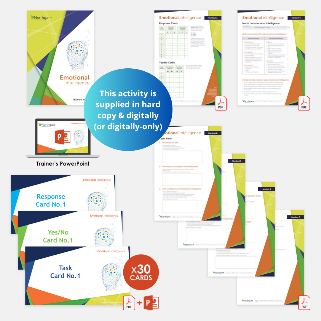 "Guaranteed to encourage interaction and involvement, and a deeper understanding of the importance of emotional intelligence in creating a happy and productive workforce. This activity is supplied both as a hard copy pack for face-to-face training, and digitally for use in virtual classrooms, making it a very flexible resource."