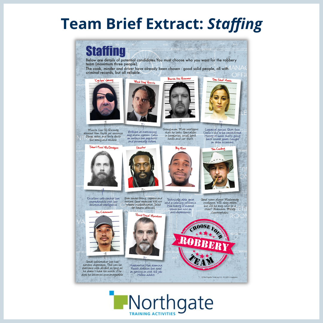 Jon Davies, Managing Director, Get the Edge UK Training & Consultancy I used Northgate’s 'How to Rob a Bank!' in a project management course and it worked really well!