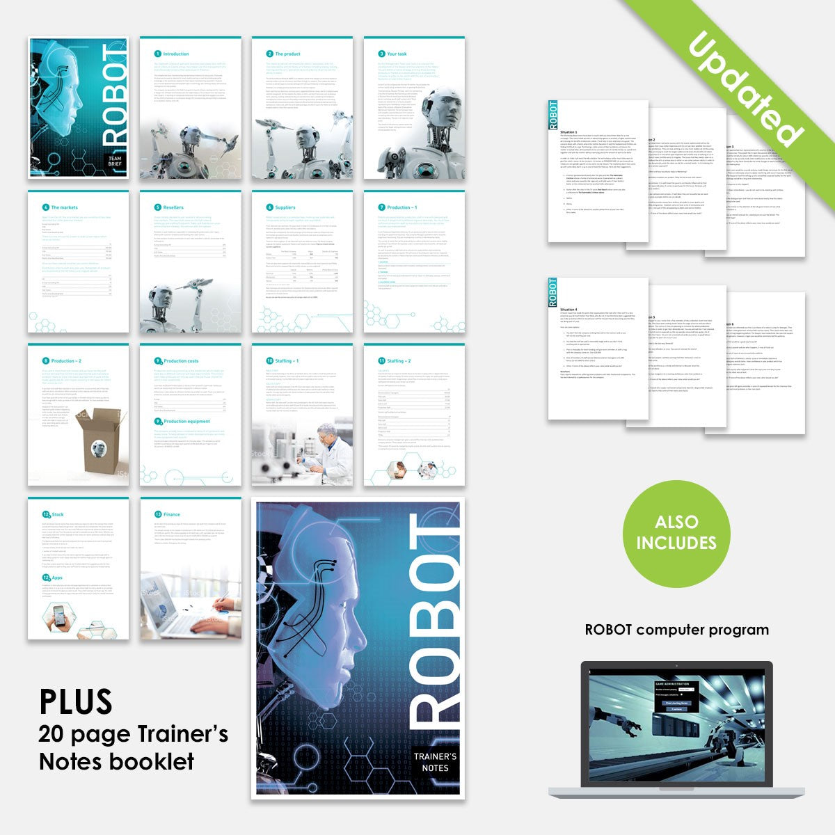 There are also optional business situations to discuss (they are thought provoking and good for discussion at the end but don’t actually influence the results). Other issues do have an effect. For example, cultural differences mean that the raw materials vary according to the region for which robots are being built. So robots are ‘region specific’. Teams also have the opportunity to extend the business by supplying apps for customers to enhance their existing robots.