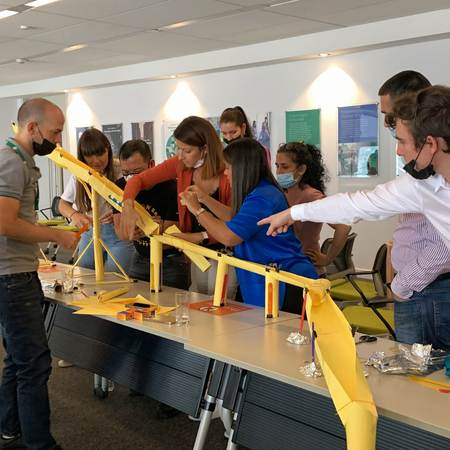But first teams need to answer a set of multiple choice questions to get the resources they require. While teams could share the answers with other teams, they often fail to do so, highlighting the importance of establishing good communication and sharing information readily. Each team needs resources or the complete structure will not be built. So why not share answers?