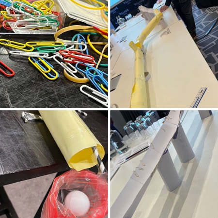Each team has to build one third of a runway to carry a ball from one end to the other.